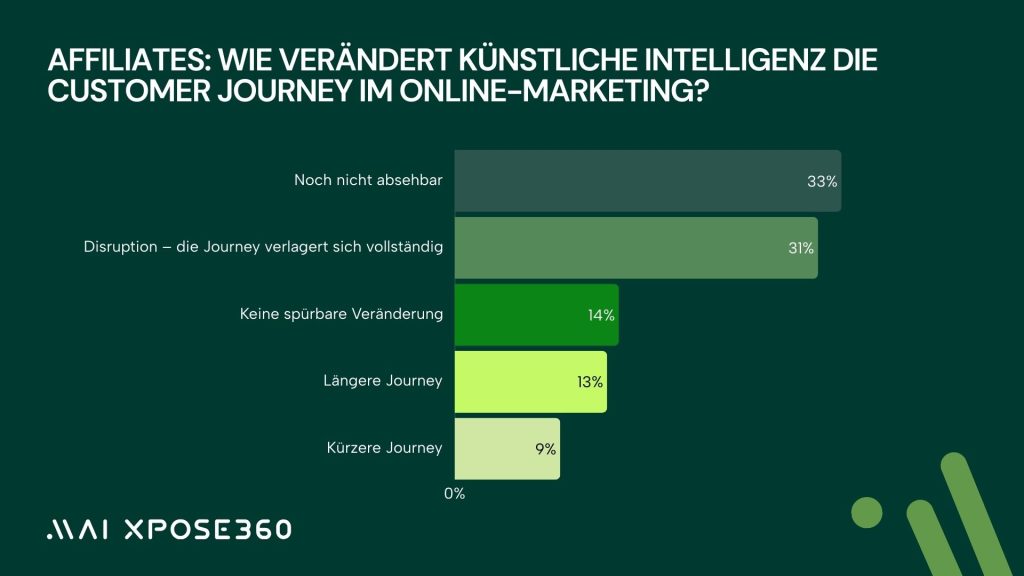Diese strukturellen Verschiebungen werden zusätzlich durch den Einsatz von KI beschleunigt. 41 Prozent der Advertiser und 31 Prozent der Affiliates erwarten, dass sich die Customer-Journey vollständig in KI-Umgebungen verlagert. Während 21 Prozent der Advertiser von einer kürzeren Journey durch KI ausgehen, erwarten 33 Prozent der Publisher, dass noch unklar ist, wie sich die Journey verändern wird. Nur 5 Prozent der Advertiser und 13 Prozent der Affiliates rechnen mit einer längeren Journey. Die dominierende Einschätzung ist jedoch klar. KI wird zu einem aktiv steuernden Element und ersetzt oder verkürzt bestehende Touchpoints. Dies hat unmittelbare Folgen für Publisher-Modelle, die an frühen oder mittleren Funnel Positionen angesiedelt sind. Wenn KI-Systeme Empfehlungen, Preisvergleiche, Inspiration und Beratung übernehmen, dann verlieren klassische Content, SEO oder Vergleichsmodelle an Relevanz, während KI-kompatible Publisher-Modelle gewinnen.